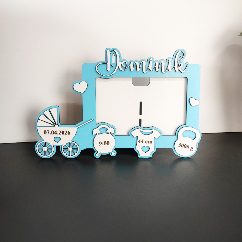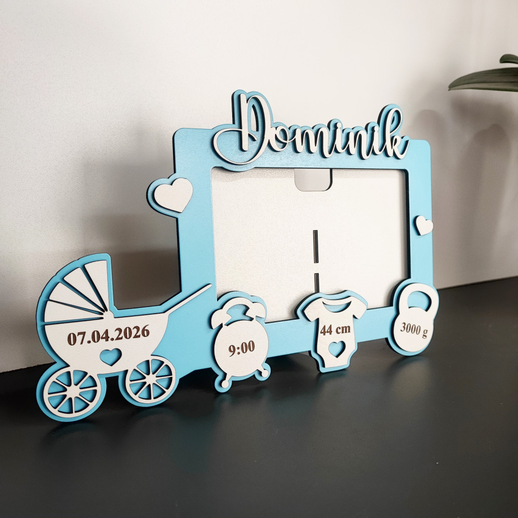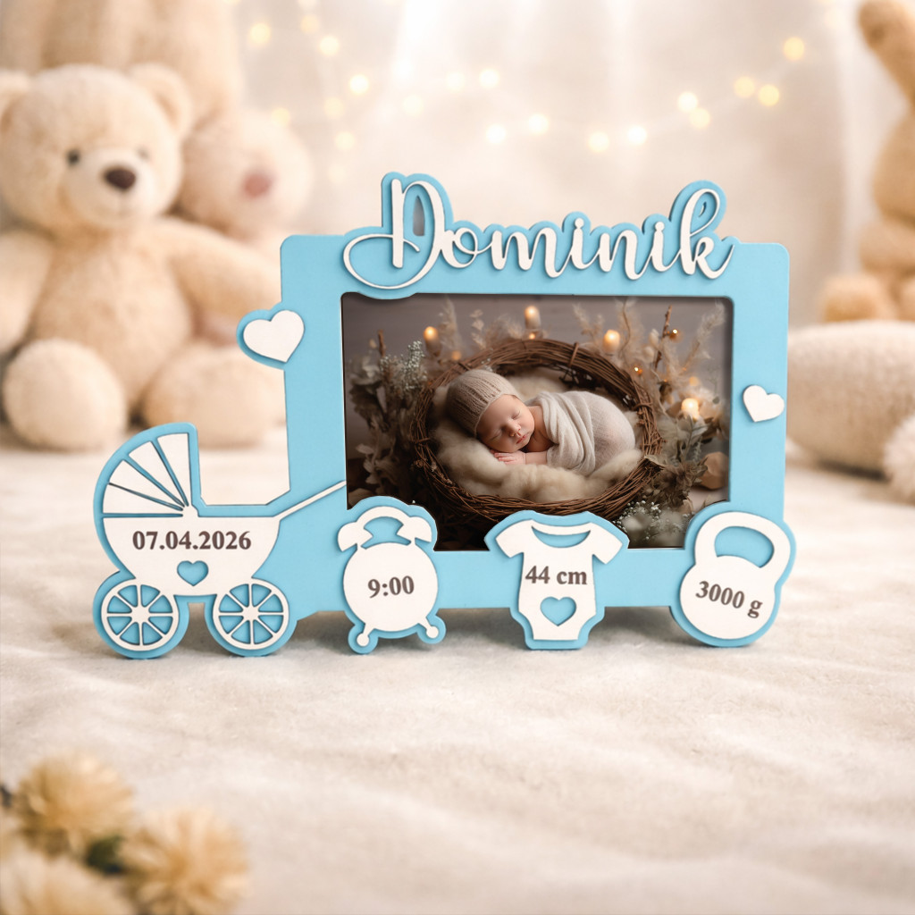 Veselý dizajn s motívom kočíka a milé detaily (čas, dátum, hmotnosť, dĺžka) robia z tohto produktu originálny a dojemný darček. Do stredu rámika je možné vložiť vlastnú fotografiu, čím vznikne ešte osobnejšia dekorácia.