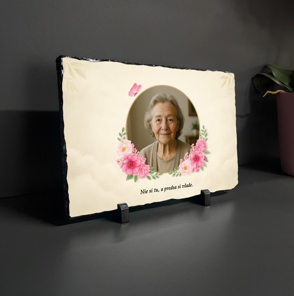 Uchovajte si spomienku na svojich blízkych štýlovo a trvácne! Táto prémiová pamätná tabuľa je vyrobená z prírodnej bridlice a modernou UV tlačou sa na ňu prenesie fotografia a citát vo vysokej kvalite, odolný voči vyblednutiu.